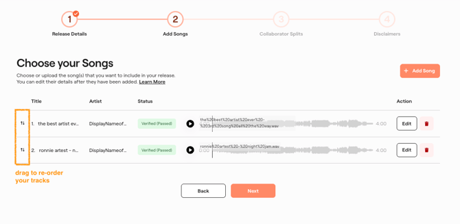 Once you're done editing the track details for all the songs in your release, click "Next" to proceed to the next step.