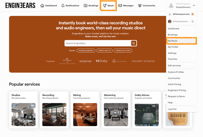 2. In the navigation menu or the profile dropdown menu, click to go to the My Music page.