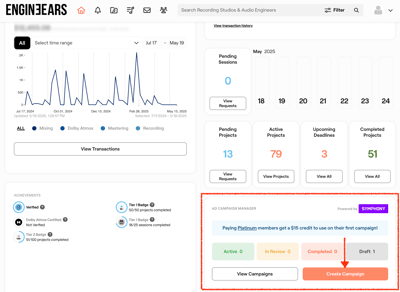 1. On your Dashboard, click the Create Campaign button in the Ad Campaign Manager section