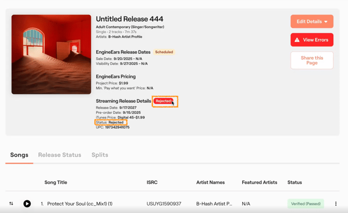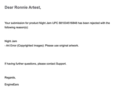 When you receive a rejection notice via email or within the details of your release in the EngineEars platform, it is important that you pay careful attention to the issues flagged for rejection and the reasons for the error/issue.